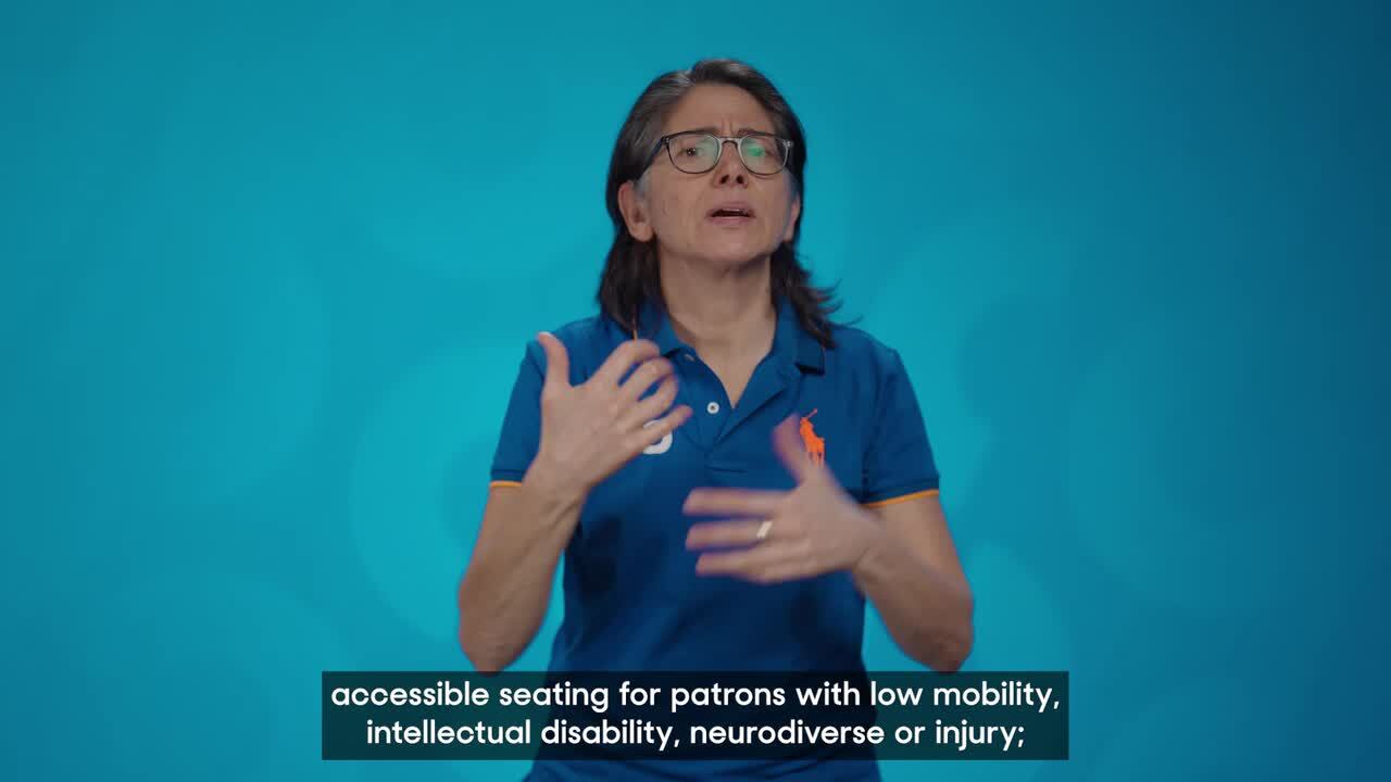 - Deaf and Dard of Hearing Seating – for people who require access to hearing loops and live captions on screens.